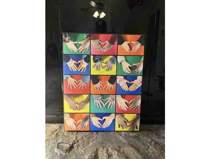 Ms. Jennifer and Ms. Stacey's 3s class created a beautiful picture with their hands forming hearts to make a picture of collective classroom love. What a beautiful remembrance of the love created and shared here at Northbrook! This is on a 16 X 20 canvas.