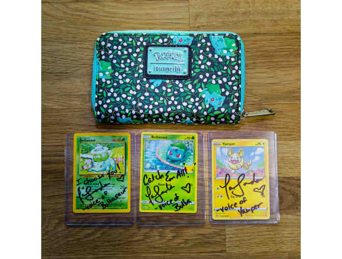 POKEMON: Three (3) Signed Pokemon Cards by the voice of Bulbasaur, Yamper and Wallet