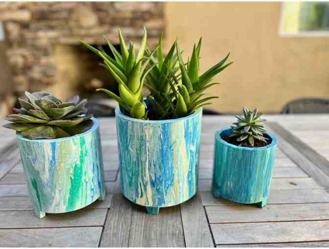Three beautiful planters painted by the students in Sra. Lopez's class. Succulents included.