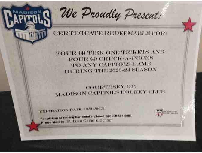 4 Teir One Tickets and 4 Chuck-A-Pucks to any Capitols Game