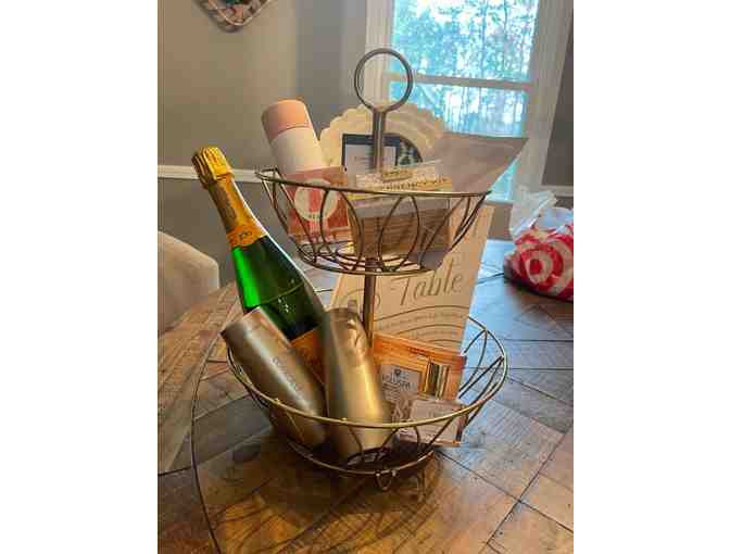 This “Bride To Be” basket is a great starting point for you, a friend, cousin, sibling, etc. to make those first, big strides in their wedding planning! It includes two wedding planning meetings that can be specified to the individual’s needs with local Wedding Planner, Shelley Legg of Campbell and Lynn Weddings. A bottle of Veuve Clicquot that can be enjoyed with a set of two gold corkcicle flutes while cooking a meal from the Newlywed Table Cookbook. The basket also includes a few wedding self care essentials and little gifts to celebrate wedding planning!