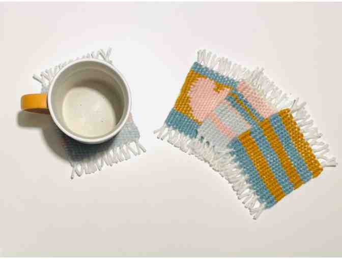 Set of four coasters handwoven by the students. Coasters measure approximately 3.5” x 5” (actual dimensions vary due to the handmade nature of the product)
