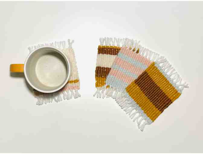 Set of four coasters handwoven by the students. Coasters measure approximately 3.5” x 5” (actual dimensions vary due to the handmade nature of the product)