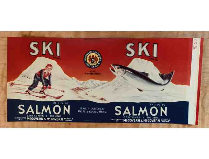 "Ski Brand" salmon was packed by McGovern & McGovern in Seattle, WA. The label is 9 3/4" x 4 3/8" including white edge overlap.