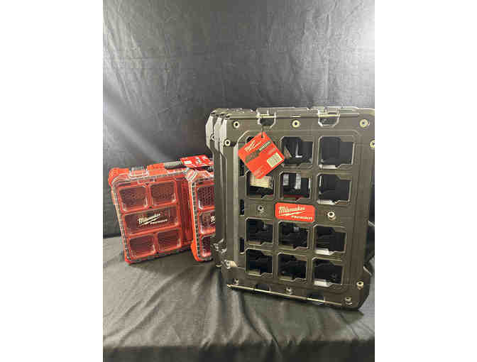 The Milwaukee Packout organizer and compact organizer and comes with 3 mounting plates TOO! Removble and mountable bins - constructed with impact resistant polymers