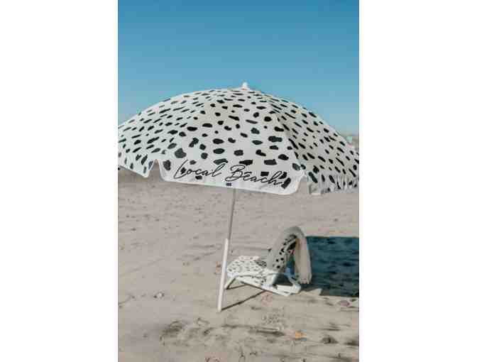 LOCAL BEACH CHEETAH UMBRELLA & SET OF 2 CHEETAH BEACH CHAIRS