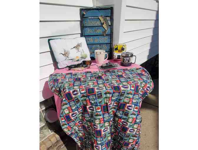 - Fish themed handmade flannel lap blanket 31in by 39in