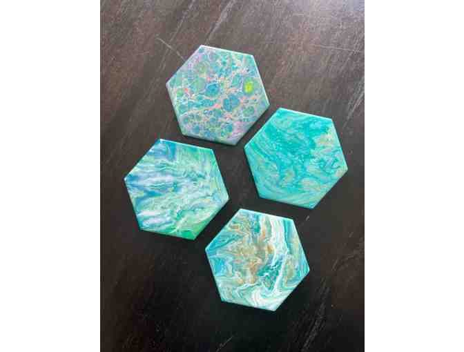 Set of 4 hand-painted ceramic coasters from Sra. Lopez's Class