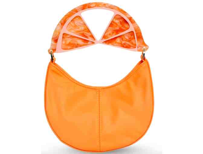 Orange you glad you found this bag?? Stand out from the crowd with this unique handbag, inspired by your favorite fruit delight! All Edie Parker bags are handcrafted in the US, featuring fun flirty styles.