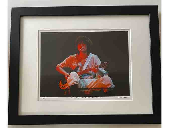 Let's talk Stairway to Heaven! Here's a photo of Led Zeppelin's Jimmy Page. This featured photo, taken by 2023 Big Sunday honoree Marc Canter, depicts Jimmy live in Los Angeles at the Forum on March 14th, 1985. This 11x14 photo is framed in a 16x20 high quality custom frame.