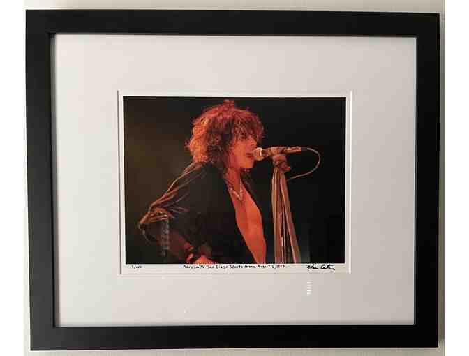 Walk this way to get an 11x14 framed photo of Steven Tyler from Aerosmith onstage at the San Diego Sports Arena on August 6th, 1983! You wouldn't know it from the picture, but this was one of 47 (!) concerts Aerosmith did in '83. This stylish photo was taken by this year's Big Sunday honoree Marc Canter and set in a 16x20 museum quality frame.