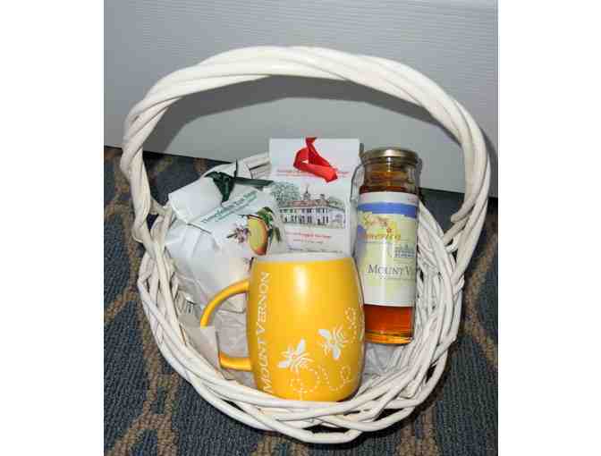 This tea basket includes, two types of tea, honey & a Mount Vernon honey mug. Perfect for someone who loves to or honey bees!