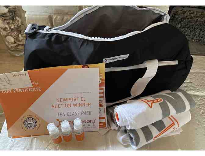 Orange Theory Package includes (1) Ten Class Pack Certificate, (3) Orange Theory towels & sanitizers, a duffle bag, and (5) guest passes