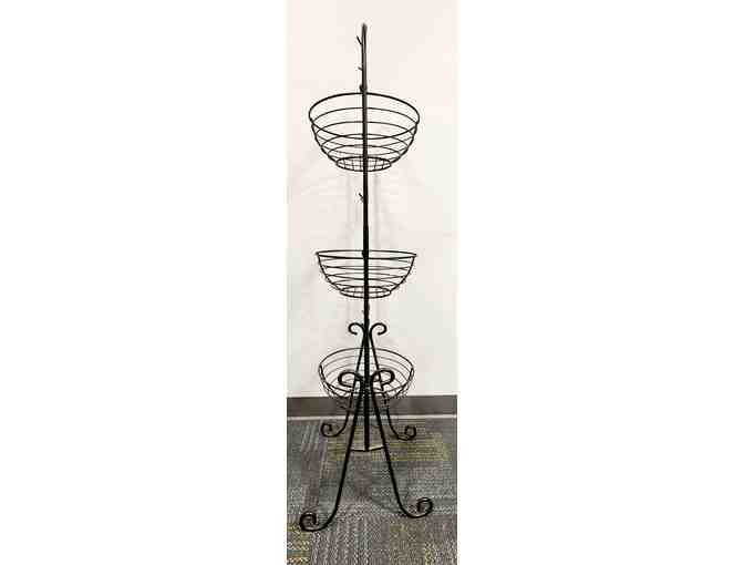 3 Tiered standing metal fruit basket. 4 feet tall, 18 inches wide. Baskets allow air to flow around produce.