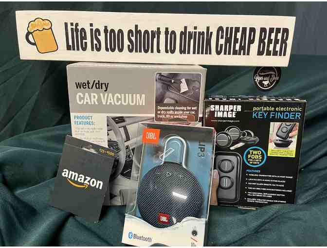 This Package Includes a Handheld Car Vacuum, an Electronic Key Finder, a JBL Waterproof Speaker, and a $25 Amazon Giftcard.