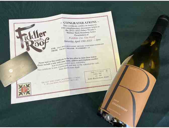 This Package Includes 2 Complimentary Mezzanine Tickets to the 2022-2023 Palace Theater's Presentation of Fiddler On The Roof on Saturday, April 15th 2023 at 2pm as well as a $50 Giftcard to Uncommon Grill, and a Bottle of Reserve Chardonnay.