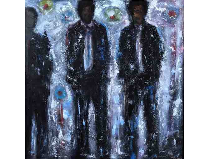 "Gentlemen" is a dramatic painting by well-known, and frequently exhibited Los Angeles artist Richard Reiner. This powerful work is 30 x 30, and is framed and ready to make a statement wherever you choose to hang it.