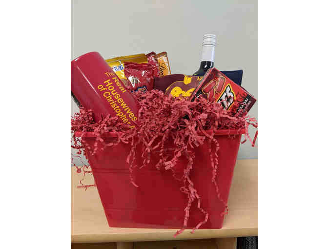 CA long sleeve t-shirt (adult medium), short sleeve t-shirt (large), bottle of wine, thermo tumbler, assorted snacks