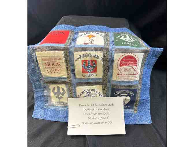 Create a custom quilt with Thread of Life. Turn your t-shirts into a collage of memories with a custom Dorm/Twin size Quilt created with 20-shirts.