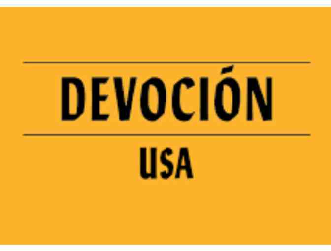 Coffee Lovers rejoice! Devocion, known for its super fresh, strong, coffee is here to perk up your day. The owner of this winning bid will receive a coffee subscription which includes one 12-oz bag of a rotating selection of their favorite house blends, shipped fresh monthly for three months.