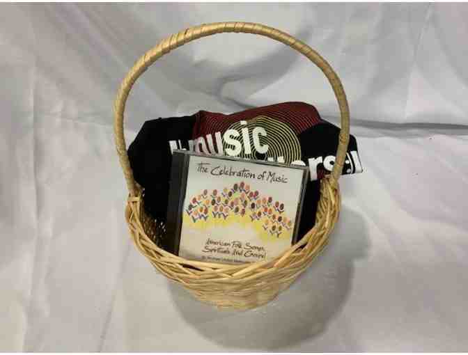 T-shirt and CD. T shirt is medium but can be exchanged for a different size.