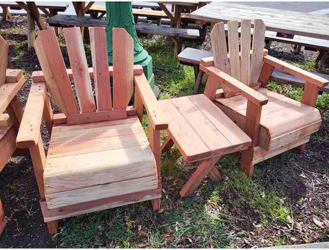 Occidental Hardware made 2 custom redwood chairs with one side table for us! Just as shown in the photo.