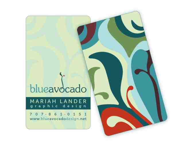 Custom designed double sided business card by Mariah Lander of Blue Avocado Design in Occidental, CA.