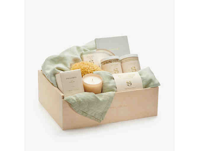 The Relaxation Gift Box is the refined renewing experience. Fresh apothecary selections made from therapeutic botanical ingredients, all natural sea sponge, linen towel, hand poured candle and hand dyed journal and more make for a gift that feels as good to give as it does to get.