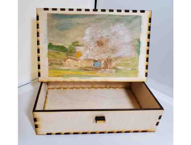 Sliding drawer box, 6.5'' by 4'' by 2''.