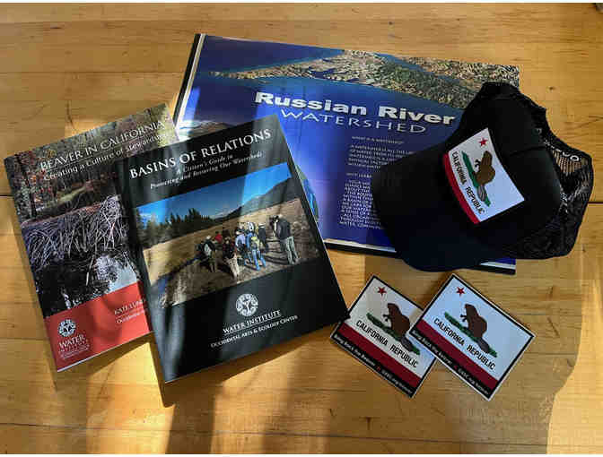 Watershed Literacy Bundle includes - Beaver Hat, 2 WATER Institute publications, stickers, Russian River map.
