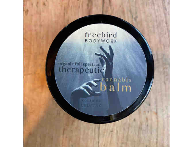 Full spectrum organic cbd/thc massage salve donated by Free Bird Body Work in Occidental.