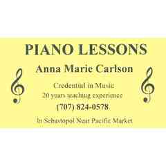 Four 30-minute Piano Lessons and Initial Meeting at Anna's home in Sebastopol - For beggininng/intermediate students. Adults or child 6.5 years and older. Classical repertoire & popular styles, theory included. Restrictions/Notes: Must make times available and start lessons by 9/30/2023. Students must have 4 octave keyboard or piano. Students must purchase own piano books.