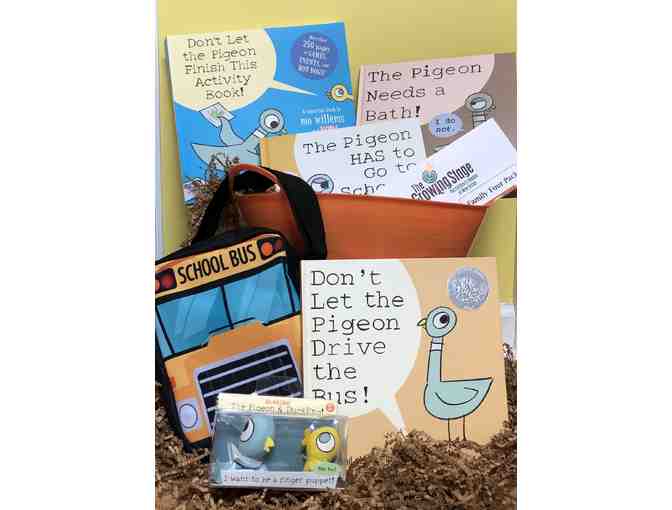 A flock of hardcover picture books by award-winning author/illustrator Mo Willems (Don't Let the Pigeon Drive the Bus, The Pigeon Needs a Bath, The Pigeon Has to Go to School), plus a giant 270-page Pigeon activity book, Pigeon & Duckling finger puppets, a school bus messenger bag, AND a Family 4-pack (2 adult + 2 kid tickets) to see Don't Let the Pigeon Drive Bus @ TGS (Show runs May 5-21, 2023)