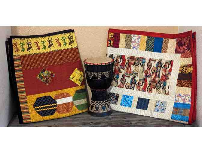 2 Handmade African Quilts with wooden drum.