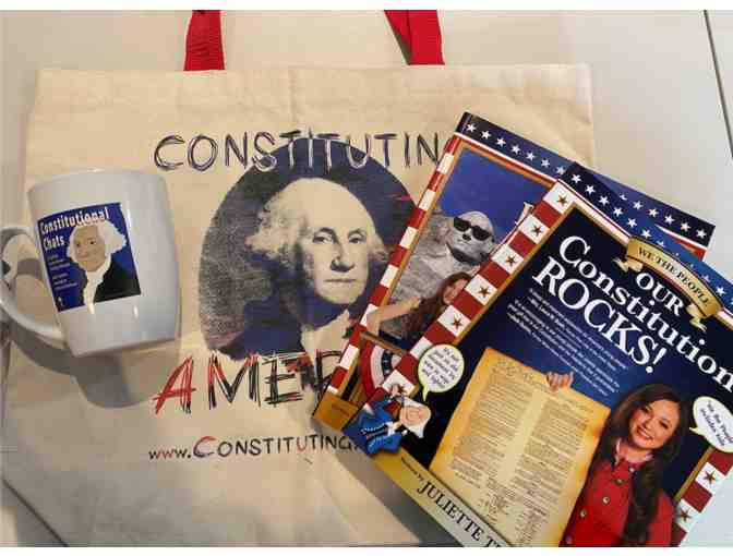 This bundle includes Our Constitution Rocks & Our Presidents Rock both written by Juliette Turner, a canvas Constituting America bag and a Constitutional Chats mug!
