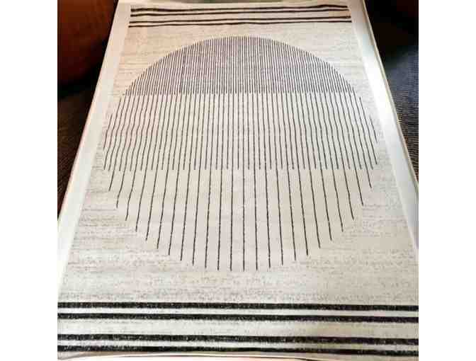The rug is from the PISA COLLECTION. It is 6'7"x9' black and cream rug from Two Sisters and Jane.