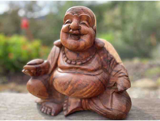Hand carved suar wood Buddha from Bali, Indonesia, from Jalan Jalan Imports in Topanga, a boutique Los Angeles importer of hand carved stone statuary, petrified wood, teak and teak root furniture, hand-crafted jewelry and many other unique treasures from Bali, Indonesia and the World.