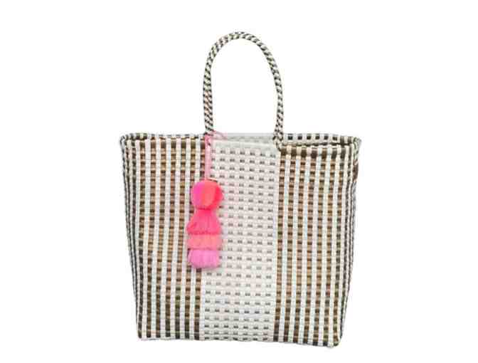 Meet the Preppy Lux Citron Bag from Squeeze De Citron. This foldable beach bag is perfect for a summer day. All bags are hand woven from recycled materials.