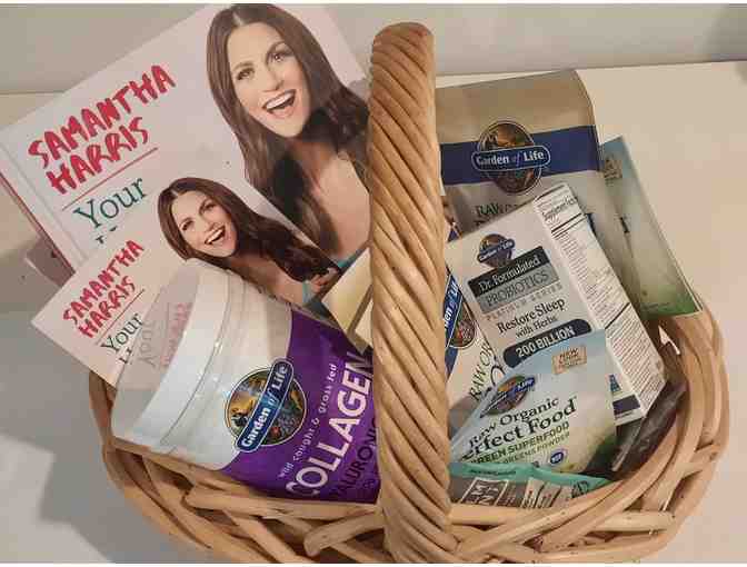 A copy of Your Healthiest Healthy by Samantah Harris, as well as her favorite supplements.