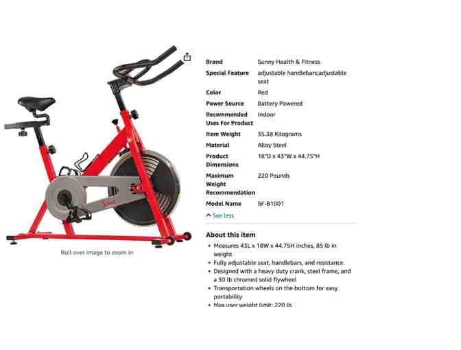 Sunny Health and Fitness Exercise Bike