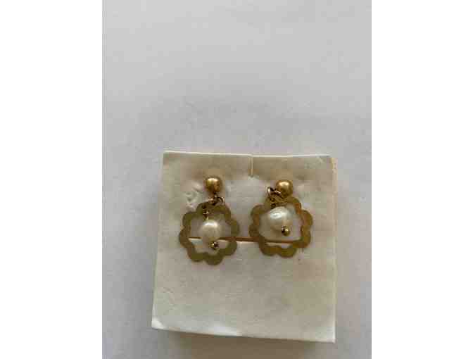 Beautiful pearl and gold plated earrings from Boutique Dahlia, located on Emek Refaim in Jerusalem's German Colony. Never worn, with original packaging.