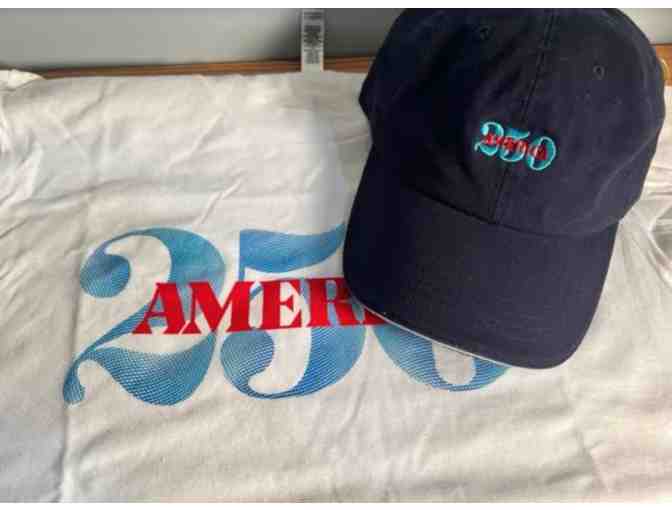 Spread the word with this sharp looking baseball cap and t-shirt (size small) , that the 250th birthday of our country is coming in 2026!
