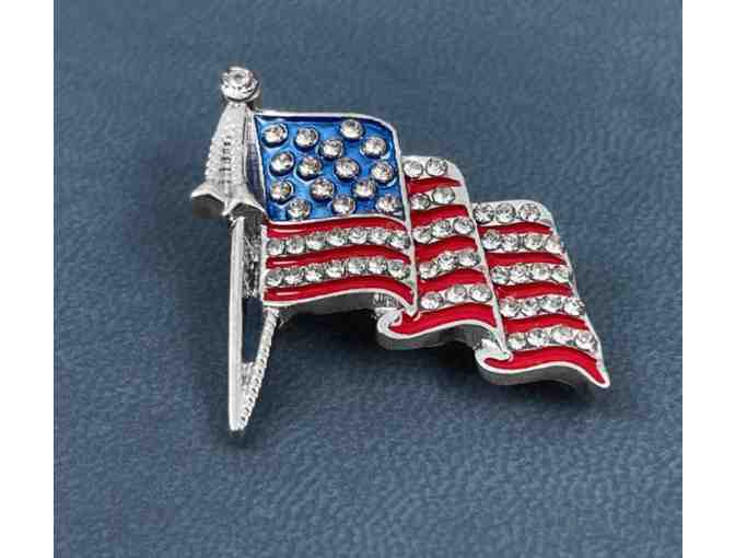 Are you proud to be an American? Then the Sparkling American Flag Pin is perfect for you! This beautiful pin goes well with every outfit and tells everyone that you love your country.
