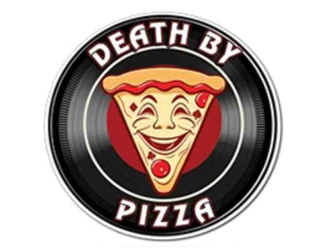 Gift certificate entitles winner to two (2) large pizzas with any toppings and 10 pieces of chicken wings from Death by Pizza (fka Broadway Pizza) located at 2709 Broadway.
