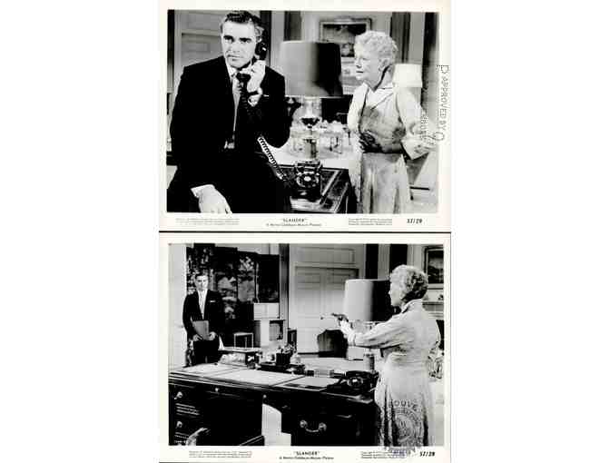 Slander, the 1957 Roy Rowland scandal magazine romantic drama starring Van Johnson, Ann Blyth, Steve Cochran, Marjorie Rambeau and Richard Eyer.