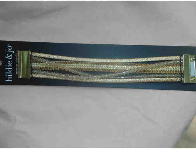 This gold tone bracelet has gold features and small beads to enhance it....plus it is magnetic!