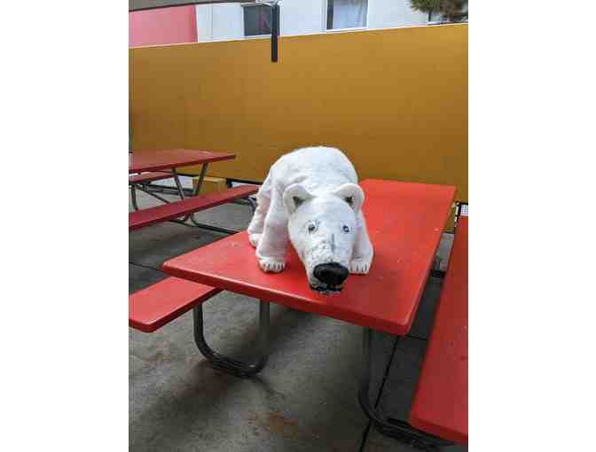 Polar bear made with recycled material as part of our project around the book 365 Penguins. It was part of our Mardi Gras float.