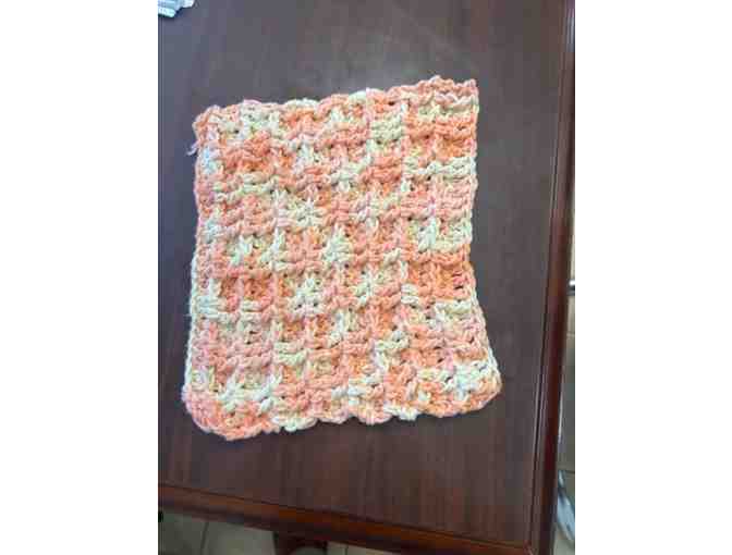 This item consists of 1 large hand-knit dish cloth made locally by Librarian Amber Wood.
