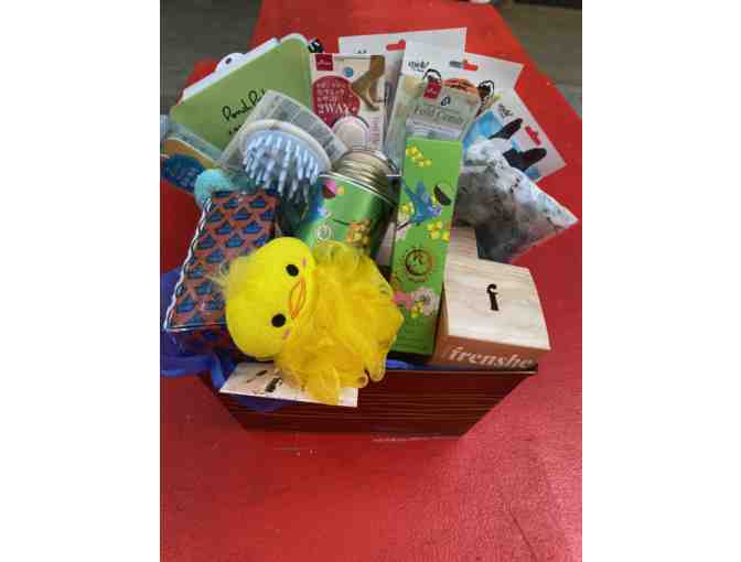 Treat yourself and your child to a day of self-care! Includes sheet masks, nail file, heel file, shampoo brush to get hair really clean, hair drying glove, folding comb, scented candles, mirrored compact, nail jewelry, bath book, and various creams to keep you looking and smelling great! Also includes a $70 gift certificate for 1 adult and 1 child to have a full mani/pedi at Emoji Nails on Arroyo. Can't forget the cute Ducky scrub sponge!