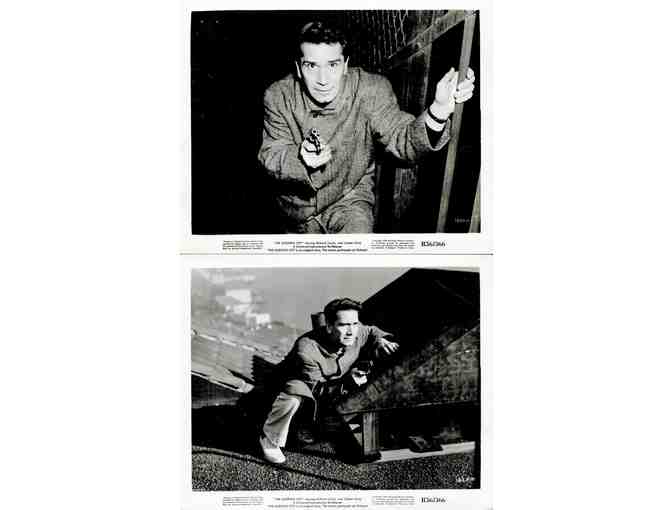 DESCRIPTION: This is a group of 11 production stills each measuring approx. 8x10 in a variety of scenes. One still has Universal International and National Screen Service tags with 8 stills have the 1956 rerelease NSS tags. The other 2 stills are an oddity NO TITLE, but the same production code and cast (so same film), but NO NSS tag, 1956 copyright (same as rerelease date), but Universal Pictures tag instead of Universal International and it mentions television. Are these early tv stills? There is also a stamp on the back of these 2 stating, THE SLEEPING CITY is an original story. The events portrayed are fictional. SEE IMAGES.